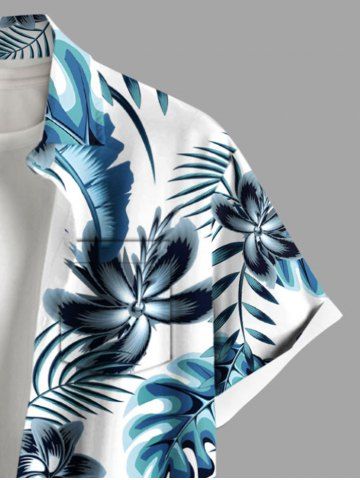 Chemise hawaïenne grande taille à imprimé floral et feuilles tropicales pour homme - Blanc - Blanc