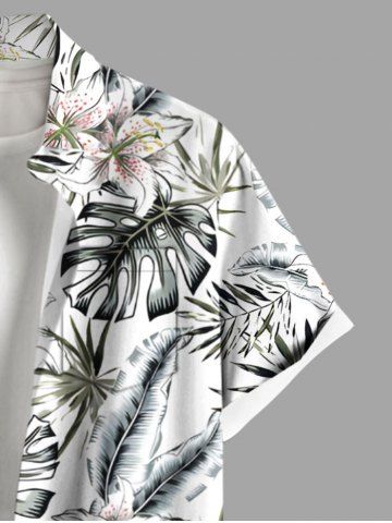 Chemise hawaïenne grande taille à imprimé floral et feuilles tropicales pour homme - Blanc - Blanc