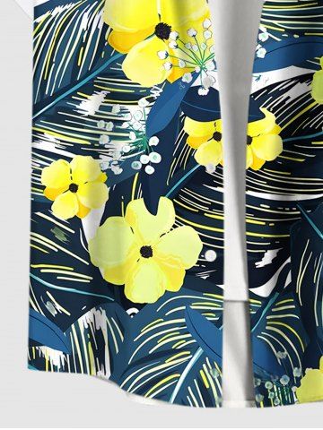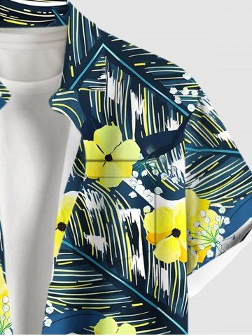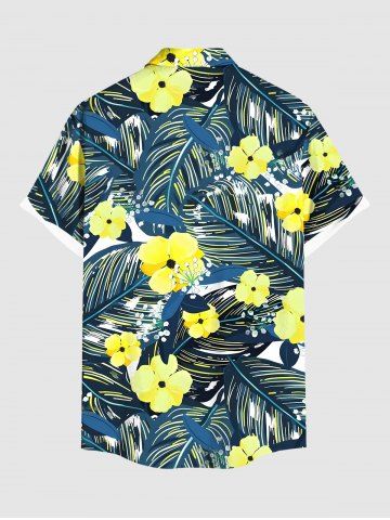 Chemise hawaïenne grande taille à imprimé floral et feuilles tropicales pour homme - Bleu Profond - S