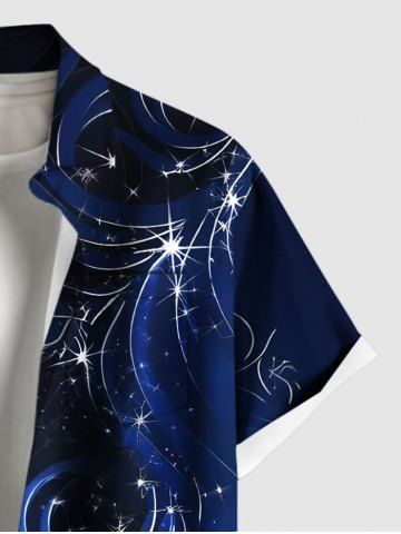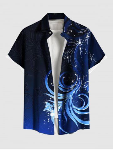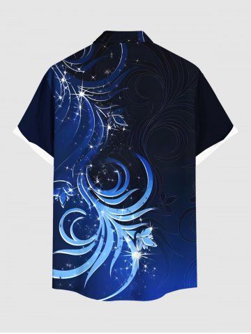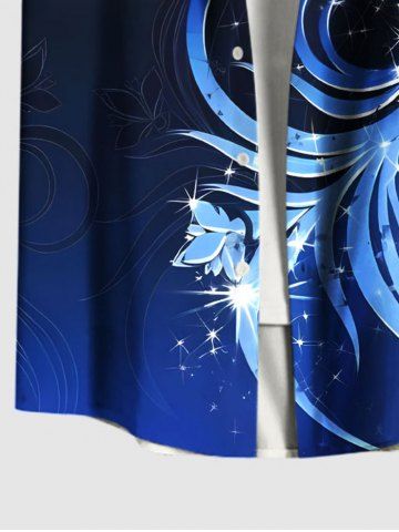 Chemise hawaïenne grande taille à imprimé floral et paillettes 3D, boutons et poches pour homme - Bleu Profond - 4xl
