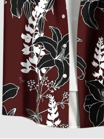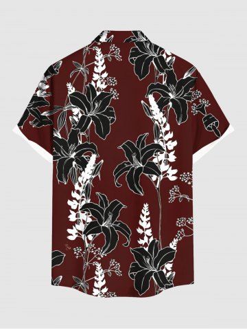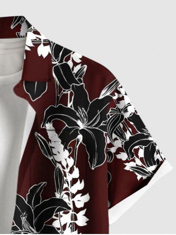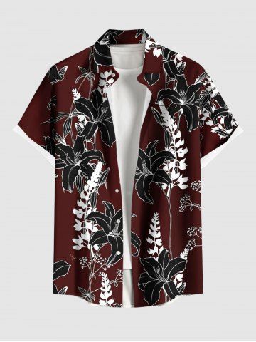 Chemise hawaïenne grande taille à imprimé floral et poches boutonnées pour homme - Rouge Vineux - 6xl