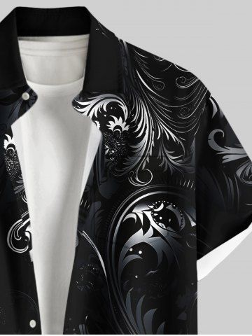 Chemise hawaïenne grande taille à imprimé floral et poches boutonnées pour homme - Noir - Noir