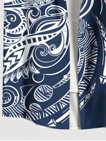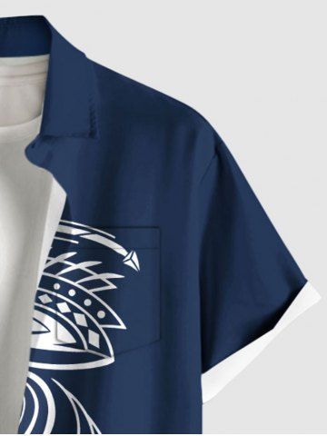 Chemise hawaïenne grande taille à imprimé floral et poches boutonnées pour homme - Bleu Marine - Bleu Marin