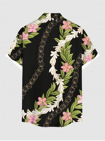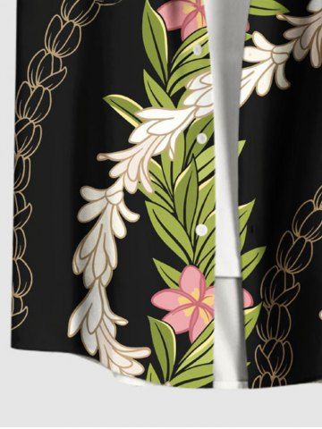 Chemise hawaïenne grande taille à imprimé floral, feuilles et branches, avec poches boutonnées pour homme - Noir - Noir