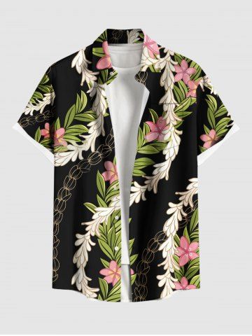 Chemise hawaïenne grande taille à imprimé floral, feuilles et branches, avec poches boutonnées pour homme - Noir - Noir
