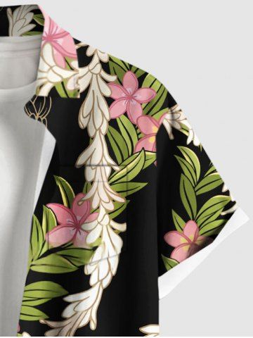 Chemise hawaïenne grande taille à imprimé floral, feuilles et branches, avec poches boutonnées pour homme - Noir - Noir