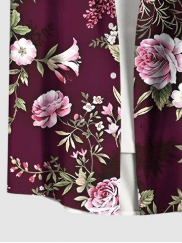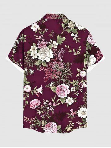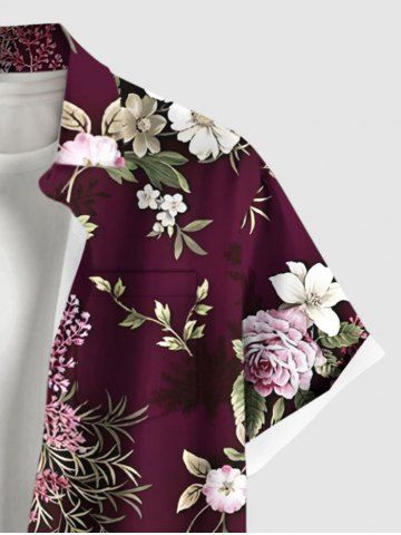 Chemise hawaïenne grande taille à imprimé floral, feuilles et branches, avec poches boutonnées pour homme - Rouge Foncé - 6xl
