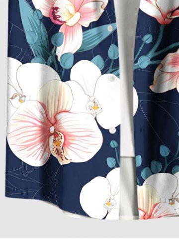Chemise hawaïenne grande taille à imprimé floral, feuilles et branches, avec poches boutonnées pour homme - Bleu Marine - Bleu Marin