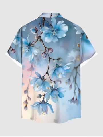 Chemise hawaïenne grande taille à imprimé floral ombré et boutons avec poches pour homme - Bleu Ciel - Bleu Ciel