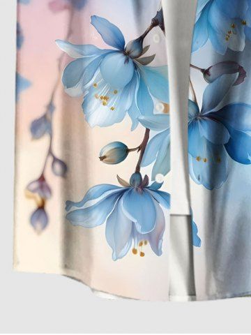 Chemise hawaïenne grande taille à imprimé floral ombré et boutons avec poches pour homme - Bleu Ciel - Bleu Ciel