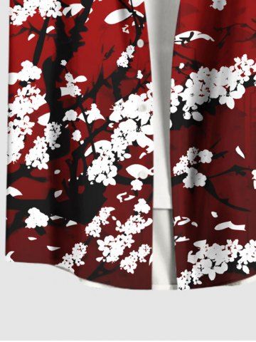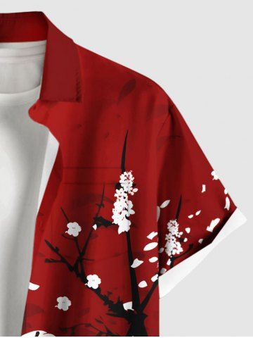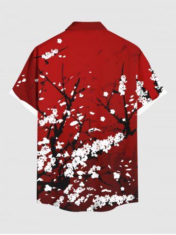 Chemise hawaïenne grande taille à imprimé floral prune et poches boutonnées pour homme - Rouge - Rouge