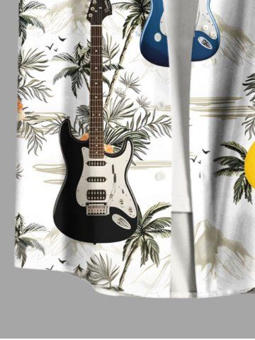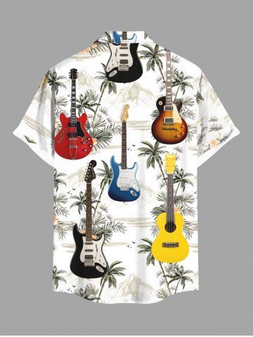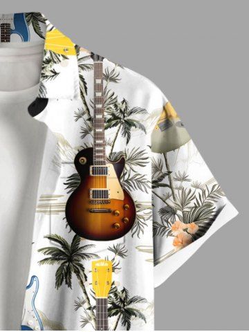 Chemise hawaïenne grande taille à imprimé guitare et fleurs de cocotiers, boutons et poches pour homme - Blanc - Blanc