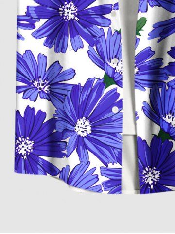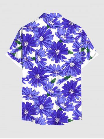 Chemise hawaïenne grande taille à imprimé marguerites et poches à boutons pour homme - Bleu Ciel - Bleu Ciel