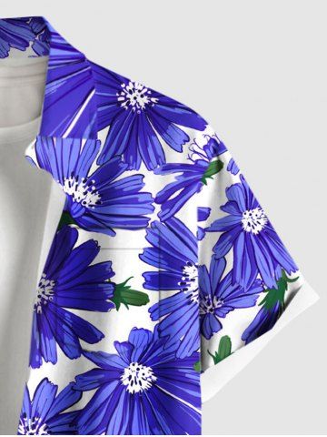 Chemise hawaïenne grande taille à imprimé marguerites et poches à boutons pour homme - Bleu Ciel - Bleu Ciel