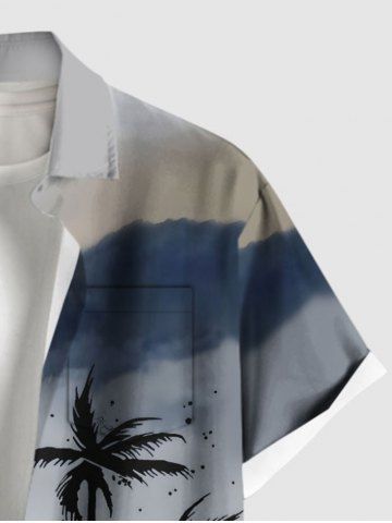 Chemise à Manches Courts> Chemise hawaïenne grande taille à imprimé ombré cocotier et nuages, boutons et poches pour homme