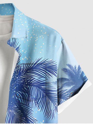Chemise hawaïenne grande taille à imprimé ombré de cocotiers, de flocons de neige et de paysages marins, avec boutons et poches, pour homme - Bleu Ciel - Bleu Ciel