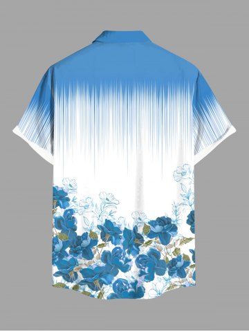 Chemise hawaïenne grande taille à imprimé ombré de fleurs et de feuilles, avec poches et boutons, pour homme - Bleu Ciel - Bleu Ciel