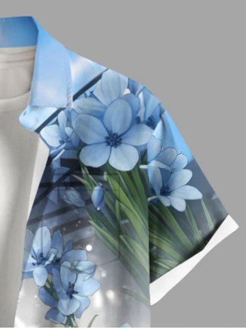Chemise hawaïenne grande taille à imprimé ombré de fleurs et de feuilles, avec poches et boutons, pour homme - Bleu Ciel - Bleu Ciel