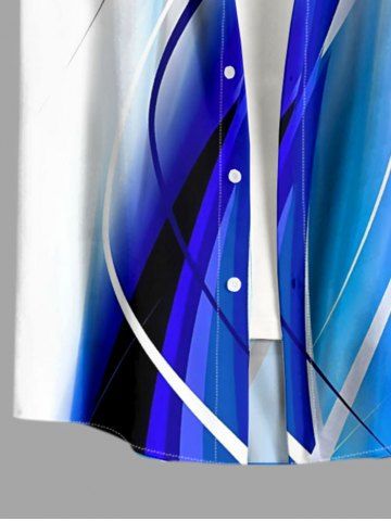 Chemise hawaïenne grande taille à imprimé ombré et poches boutonnées pour hommes - Bleu - Bleu
