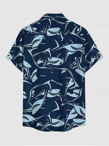 Chemise hawaïenne grande taille à imprimé requins, boutons et poches pour hommes - Bleu Profond - Xl