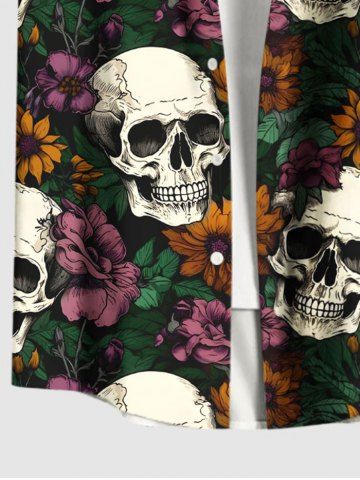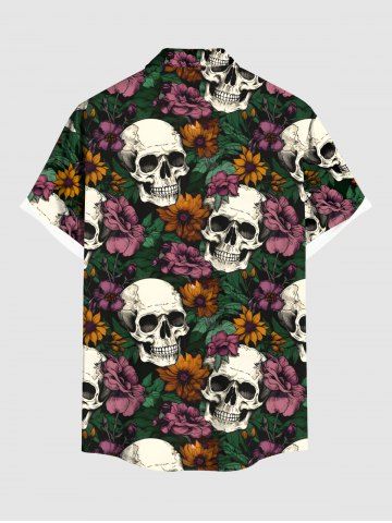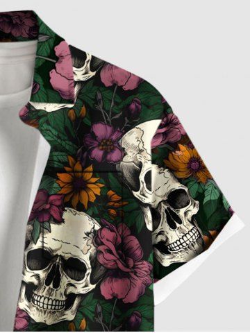 Chemise à Manches Courts > Chemise hawaïenne grande taille à imprimé tête de mort et fleurs pour homme