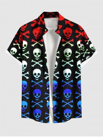 Chemise hawaïenne grande taille à imprimé tête de mort et os ombré avec poches boutonnées pour homme - Multi-a - M