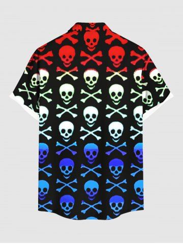 Chemise à Manches Courts> Chemise hawaïenne grande taille à imprimé tête de mort et os ombré avec poches boutonnées pour homme