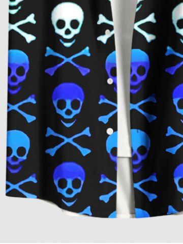Chemise à Manches Courts> Chemise hawaïenne grande taille à imprimé tête de mort et os ombré avec poches boutonnées pour homme