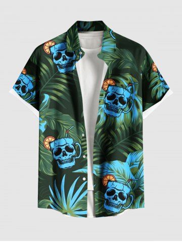 Chemise hawaïenne grande taille à imprimé tropical et feuilles d'oranger, avec boutons et poches, pour homme - Vert - Vert