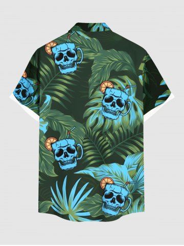 Chemise hawaïenne grande taille à imprimé tropical et feuilles d'oranger, avec boutons et poches, pour homme - Vert - Vert
