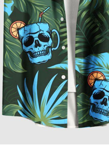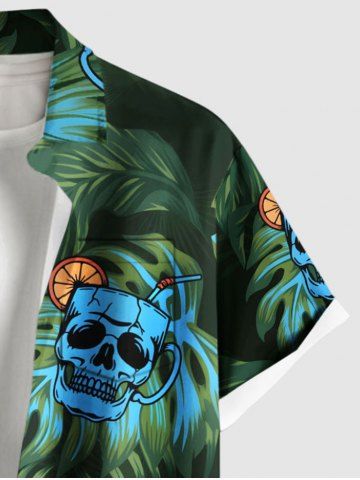 Chemise hawaïenne grande taille à imprimé tropical et feuilles d'oranger, avec boutons et poches, pour homme - Vert - Vert