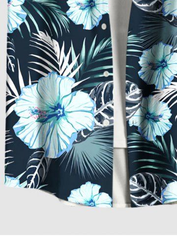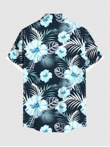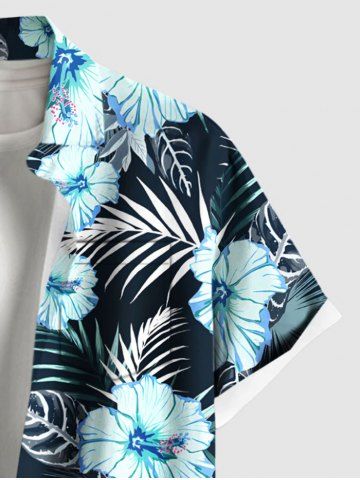 Chemise à Manches Courts> Chemise hawaïenne grande taille à imprimé tropical, fleurs d'hibiscus et feuilles, avec poches et boutons, pour homme