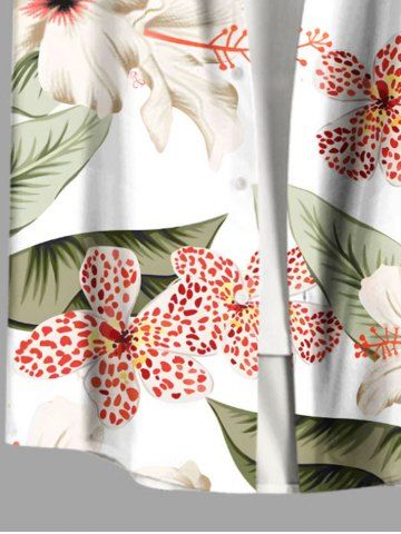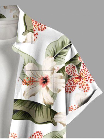Chemise hawaïenne grande taille à imprimé tropical, fleurs d'hibiscus et feuilles, avec poches et boutons, pour homme - Blanc - Blanc