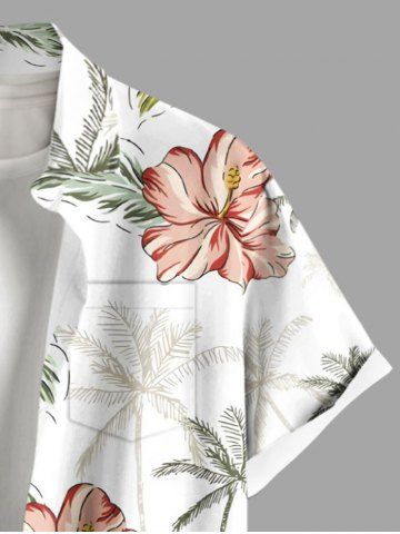 Chemise hawaïenne grande taille à imprimé tropical, fleurs d'hibiscus, feuilles, cocotiers, boutons et poches pour homme - Blanc - Blanc