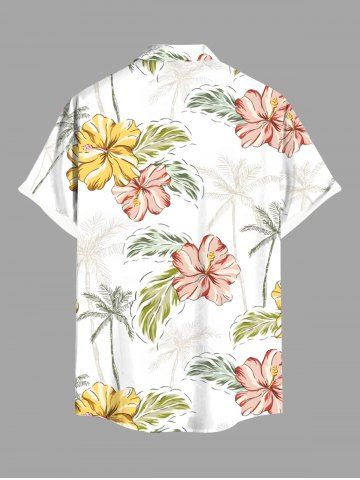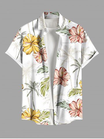 Chemise hawaïenne grande taille à imprimé tropical, fleurs d'hibiscus, feuilles, cocotiers, boutons et poches pour homme - Blanc - Blanc