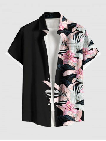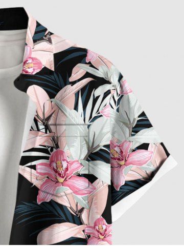 Chemise hawaïenne grande taille à imprimé tropical, fleurs et feuilles, avec poches et boutons, pour homme - Noir - Noir