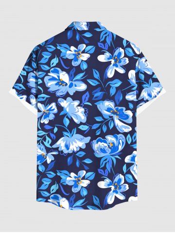 Chemise hawaïenne grande taille à imprimé tropical, fleurs et feuilles, avec poches et boutons, pour homme - Bleu - Bleu