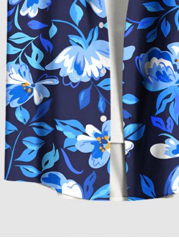 Chemise hawaïenne grande taille à imprimé tropical, fleurs et feuilles, avec poches et boutons, pour homme - Bleu - Bleu