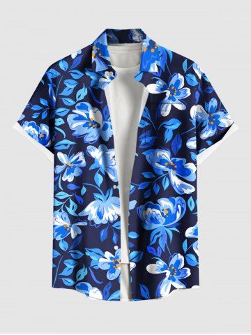 Chemise hawaïenne grande taille à imprimé tropical, fleurs et feuilles, avec poches et boutons, pour homme - Bleu - Bleu