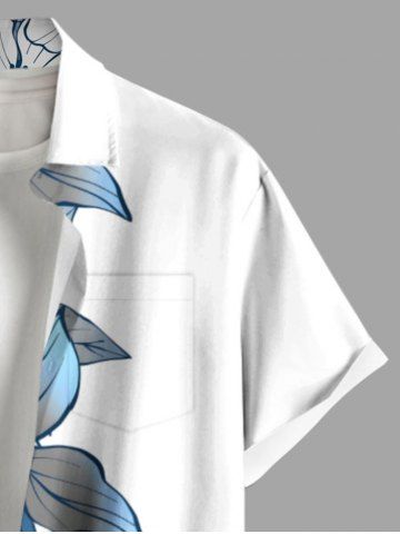 Chemise hawaïenne grande taille à imprimé tropical, fleurs et feuilles, avec poches et boutons, pour homme - Blanc - Blanc