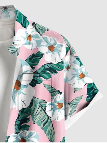 Chemise hawaïenne grande taille à imprimé tropical, fleurs et feuilles, avec poches et boutons, pour homme - Rose Clair - Rose Léger
