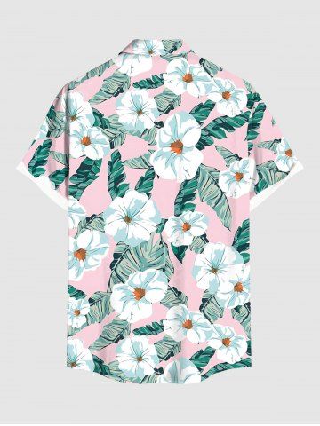 Chemise hawaïenne grande taille à imprimé tropical, fleurs et feuilles, avec poches et boutons, pour homme - Rose Clair - Rose Léger