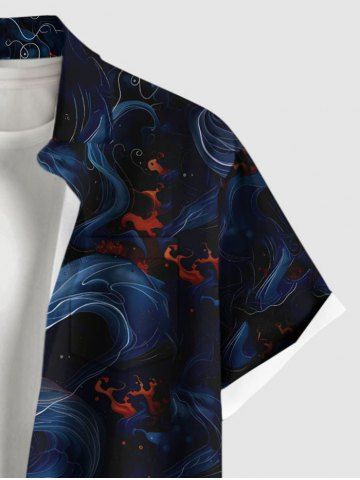Chemise hawaïenne grande taille à imprimé vagues de poulpe et boutons avec poche pour homme - Bleu De Minuit - 4xl