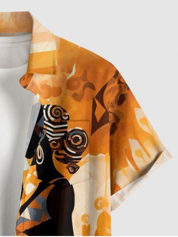 Chemise hawaïenne grande taille à motifs ethniques, boutons et poches pour hommes - Brun Légère - Marron Clair