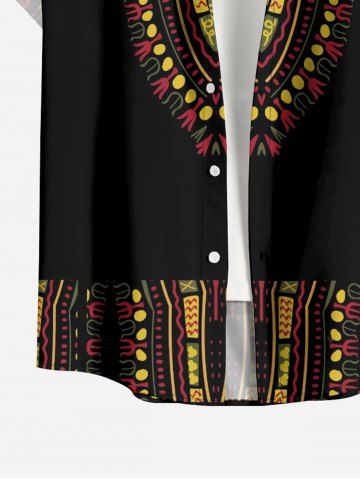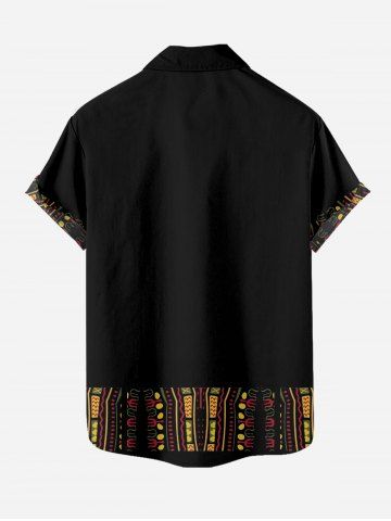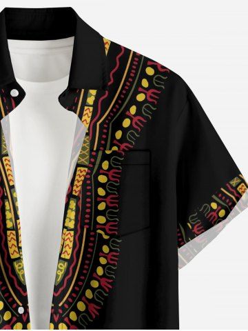 Chemise hawaïenne grande taille à motifs ethniques imprimés, boutons et poches pour hommes - Noir - Noir