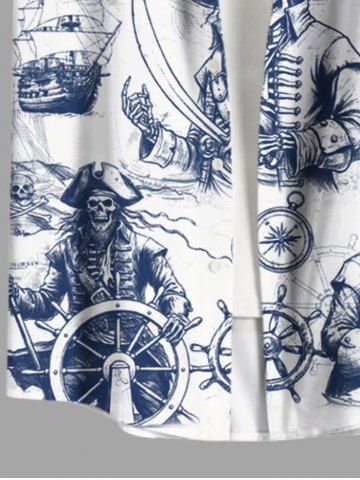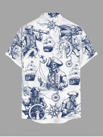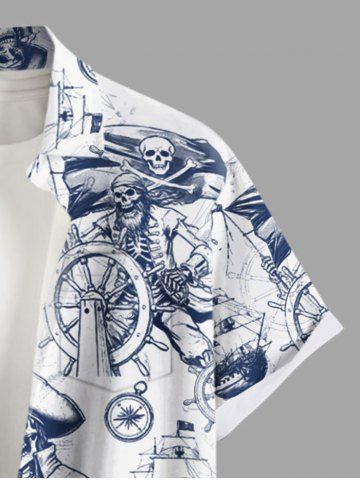 Chemise à Manches Courts> Chemise hawaïenne grande taille avec imprimé tête de mort, bateau pirate, gouvernail, ancre, croisière, boutons, poche, pour homme