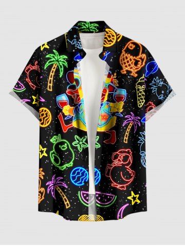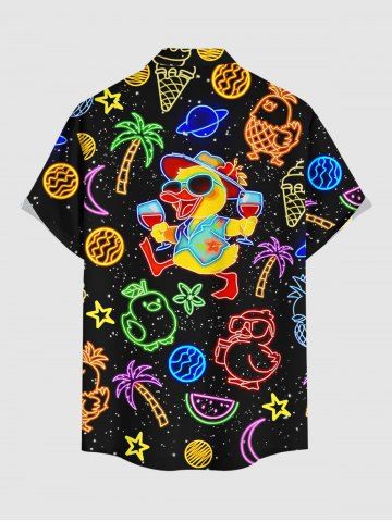 Chemise hawaïenne grande taille pour homme, à boutons et poche, avec imprimé galaxie, étoiles, cocotiers, canards et pastèque. Motif : galaxie, étoiles, cocotiers et pastèque. - Noir - Noir