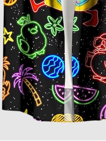 Chemise hawaïenne grande taille pour homme, à boutons et poche, avec imprimé galaxie, étoiles, cocotiers, canards et pastèque. Motif : galaxie, étoiles, cocotiers et pastèque. - Noir - Noir