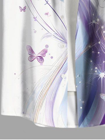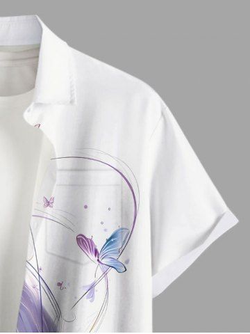 Chemise hawaïenne grande taille pour homme, à boutons et poche, imprimé 3D pailleté, motif papillon et courbes. - Blanc - Blanc