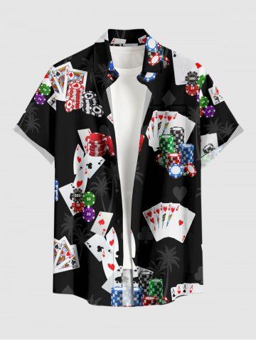 Chemise hawaïenne grande taille pour homme, à boutons et poche, ornée d'un motif cœur et de noix de coco. - Noir - Noir